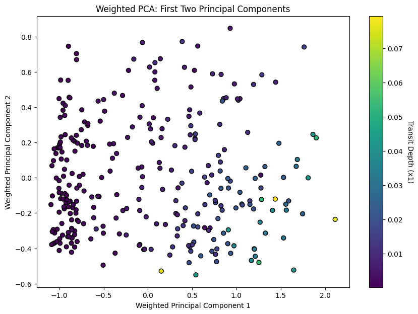 # Add visualization for actual transit depth (since it was not part of the PCA)