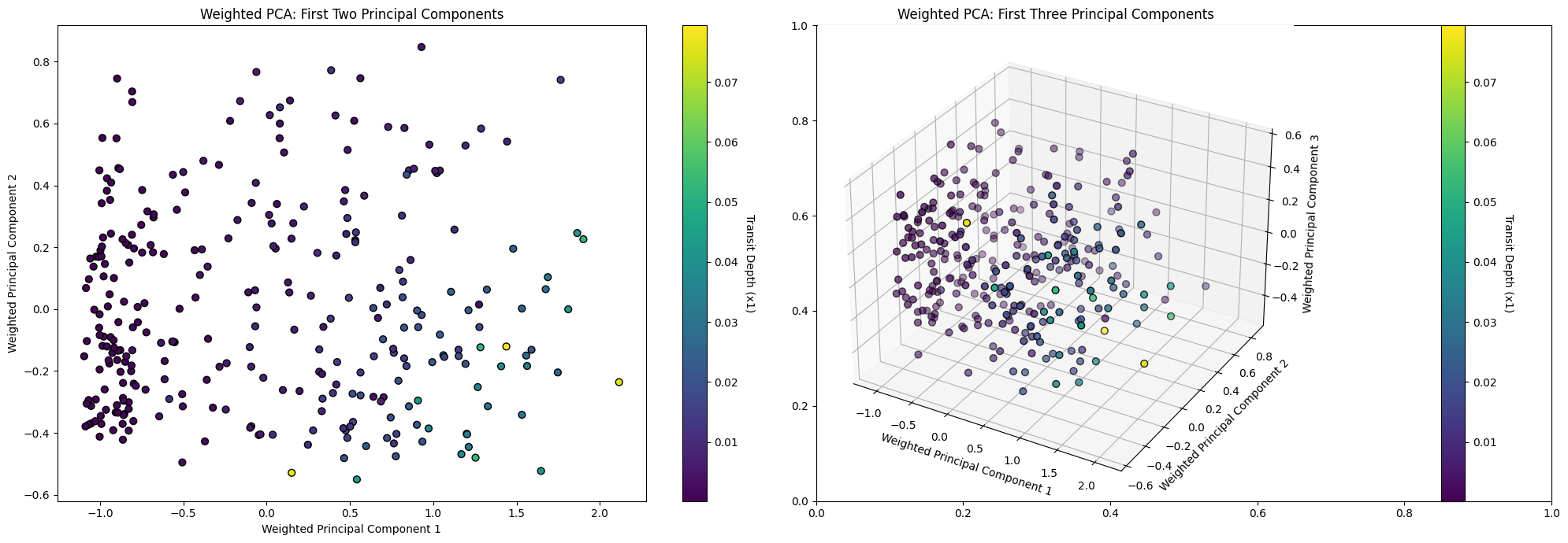 - Features are adjusted based on their significance as ascertained by a prior model, specifically the Random Forest. Weighting the features adjusts the emphasis the PCA places on each feature during the dimensionality reduction process.