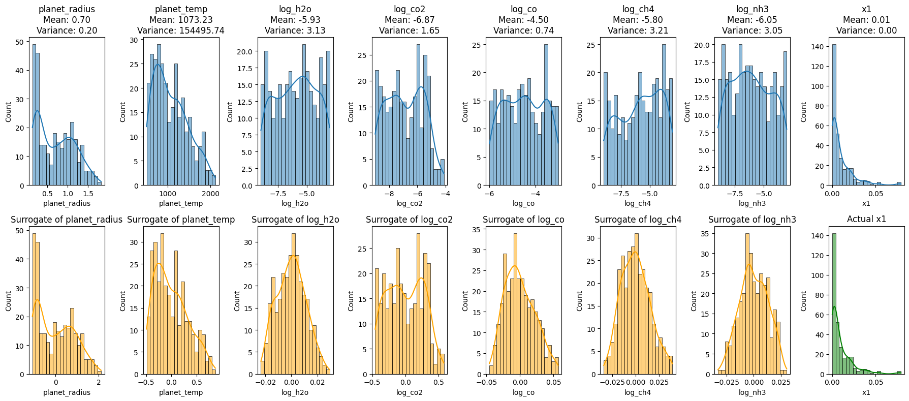 axes[1, i].set_title(f'Surrogate of {col}')